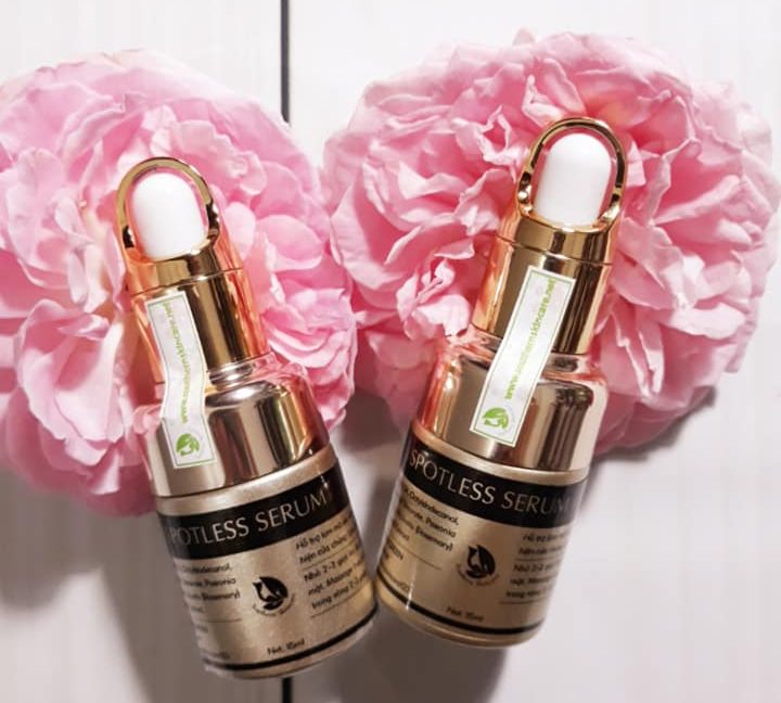 Với nàng bị nám, tàn nhang có thể dùng Spotless serum giúp làm mờ các đốm tàn nhang, nám nhẹ nhàng từ bên trong. Đây là một sản phẩm gốc dầu nên các nàng da dầu cần xem mình có hợp không nhé.