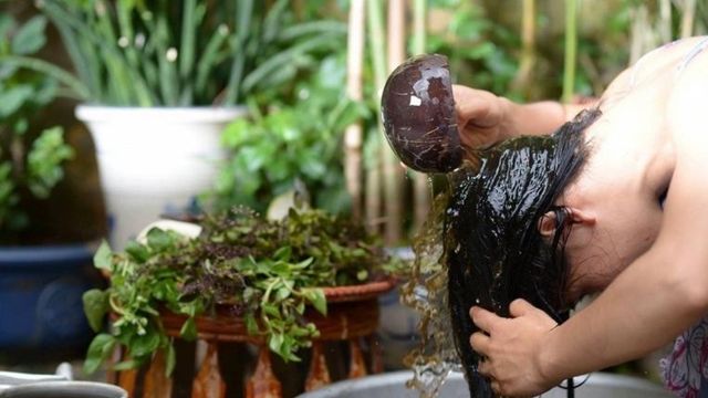 – Tráng nước lạnh sau khi gội xong. Đừng nghĩ giữ lại bồ kết cho nó tốt tóc. Gội hết nó đi,nếu không tóc bết hơn đấy.