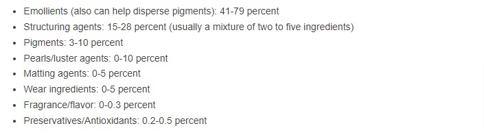 - Son môi thường được pha chế theo ba giai đoạn: nghiền bột màu, nền sáp và hỗn hợp dầu pha loãng.